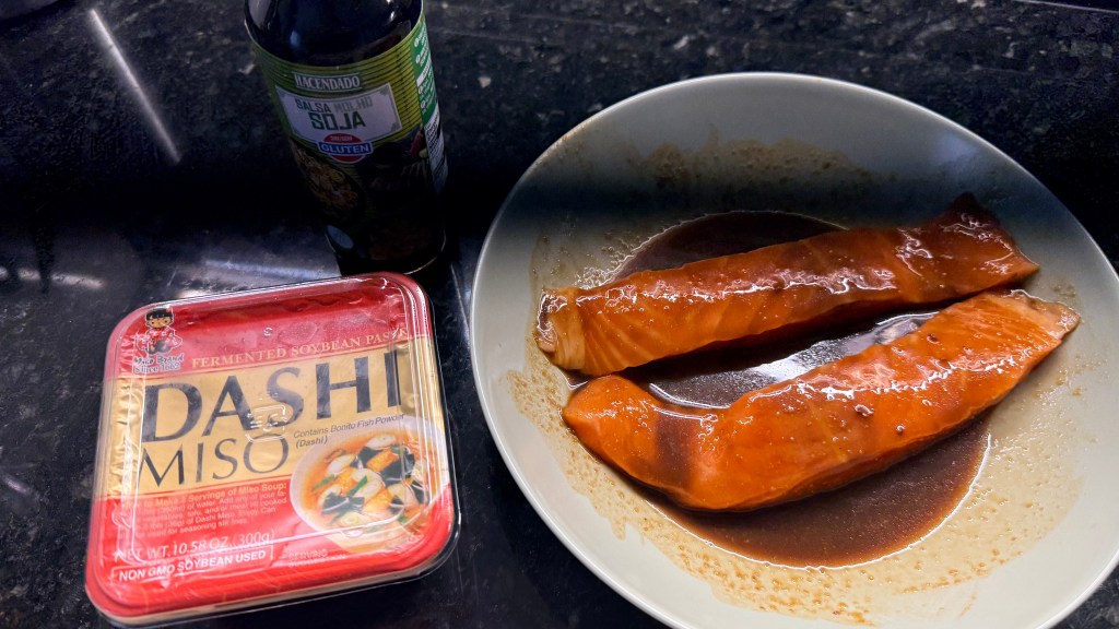2. Put salmon skin side up in the bowl and cover it with the sauce. Let sit at least 10 minutes.