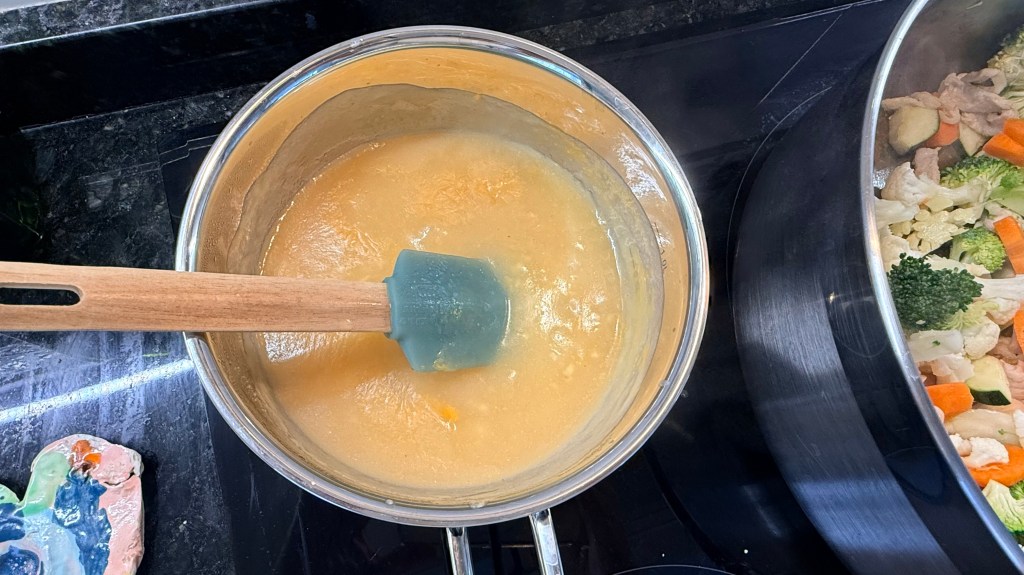 6. Add the sauce near the end of your cooking time, when the meat/veg are just about done.
